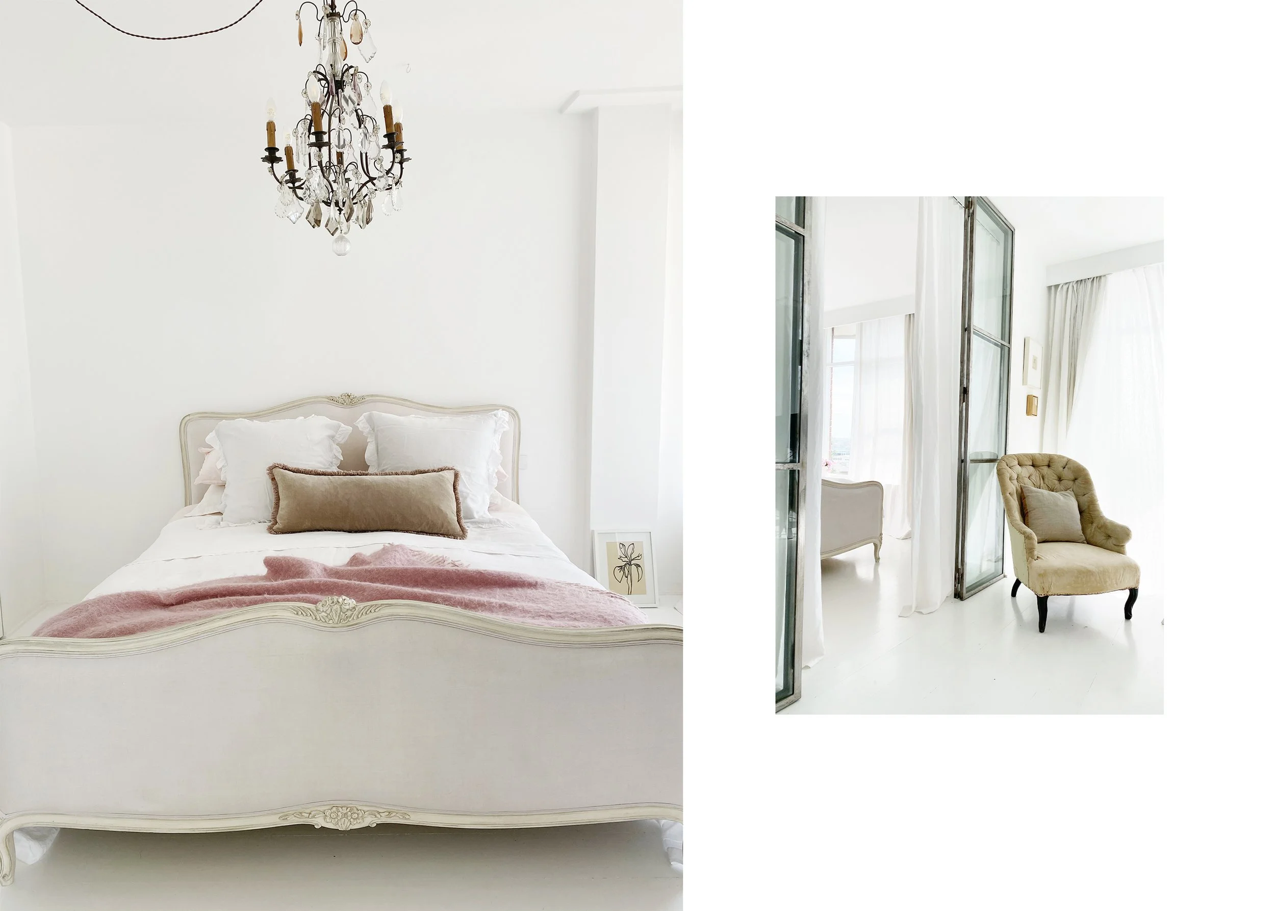 was replaced with steel-framed glass doors so the enormous French linen-covered bed would always be on display.